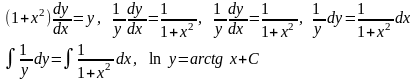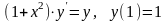 равенство начальные условия x=1 и y = π / 2, получим arctg (C) = π / 4,то есть С=1. Решением задачи Коши является функция y = 2x × arctgx.