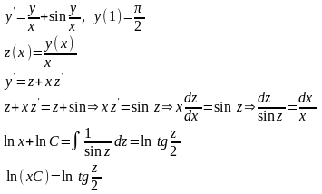Решив это уравнение, найдем функцию z (x), а с ней и решение исходного уравнения y (x) =x z (x).