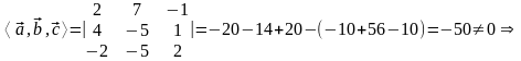Решение. Если векторы компланарны, то по свойству 4) их смешанное произведение равно нулю. Проверим это. Найдем смешанное произведение данных векторов, вычислив определитель: