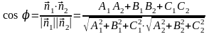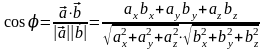 Зная скалярное произведение, можно определить угол между двумя векторами по формуле: