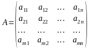 Матрицей А=||aij || размера nm называется прямоугольная таблица чисел.