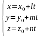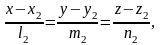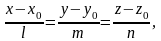 Составим уравнения прямой, проходящей через точку М0(x0,y0,z0) параллельно вектору a={l,m,n}.