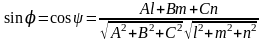 Ax + By + Cz + D = 0, можно рассматривать как дополнительный к углу ψ между направляющим вектором прямой и нормалью к плоскости. Тогда