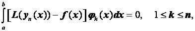Метод Галеркина состоит в том, что решение задачи (2.62), (2.63) ищется в виде (2.64), причем требуют ортогональности