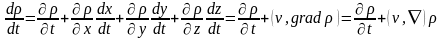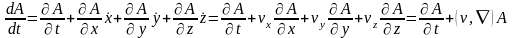 – конвективная производная, она связана с перемещением точки (частицы) из одной точки пространства в другую.