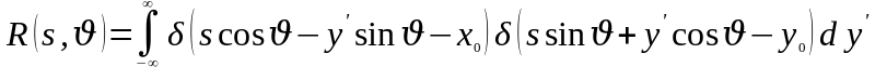 Согласно определению радоновского образа и с учетом того, что интеграл от заданной функции вдоль прямой равен интегралу по всей плоскости произведения этой функции на
