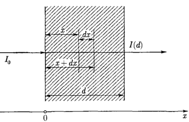 Рассмотрим вначале физический закон распространения внешнего излучения в веществе. Пусть тонкий пучок, например