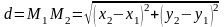 На плоскости даны две точки М1 (х1; у1) и М2 (х2; у2) . Найдем расстояние между ними d. Выполним чертеж, расположив для простоты точки в первой четверти.