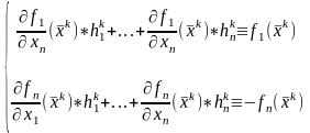 Система (5.3) представляет собой систему линейных алгебраических уравнений для поиска компонента вектора поправки hk.