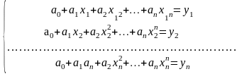Необходимо определить коэффициенты полинома степени n(их будет n+1), построения аппроксимации функции, заданной в n+1 узле. Используя ограничения на (): (i)= (i)=y, i=0,n , составим систему: