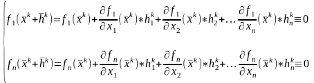 Разложим функции fi из системы (5.2) в ряд Тейлора в окрестности точки хк до линейных составляющих.