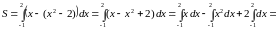 . Так как фигура ограничена сверху графиками двух функций, то для вычисления ее площади разобьем данную фигуру прямой