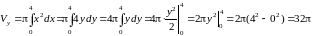 Пример 13. Вычислить объем тела, полученного вращением вокруг оси