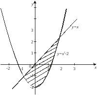 Решение. Данная фигура изображена на рис. 7. Площадь ее вычислим по формуле (8). Решая систему уравнений