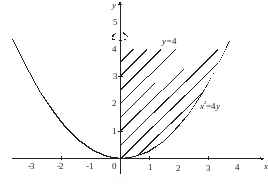 Пример 14. Вычислить объем тела, полученного вращением вокруг оси Оу криволинейной трапеции, ограниченной линиями х2 = 4у, у = 4, х = 0 (рис. 13).