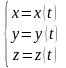 30. Яким рівнянням задається дотична до кривої в просторі заданої за допомогою рівнянь