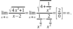 предел равен бесконечности, если степень аргумента числителя выше степени аргумента знаменателя;