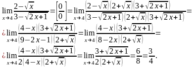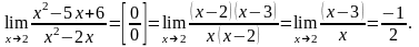 раскрывается путем преобразования подпредельной функции т.о., чтобы в числителе и знаменателе выделить множитель, предел которого равен нулю, и, сократив на него дробь, найти предел частного. Для этого числитель и знаменатель либо раскладывают на множители, либо домножают на сопряженные числителю и знаменателю выражения.
