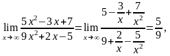 искомый предел равен отношению коэффициентов при старших степенях аргумента числителя и знаменателя, если эти степени одинаковы;