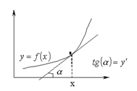 Механический смысл производной – скорость изменения функции. Геометрический смысл производной – тангенс угла наклона касательной к графику функции: