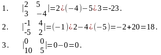 Применение указанных свойств может в ряде случаев облегчить процесс вычисления определителей, особенно третьего порядка.