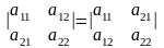 Свойство 1. Величина определителя не изменится, если его строки поменять местами с соответствующими столбцами.