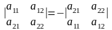 Свойство 2. При перестановке двух строк (или столбцов) определитель изменяет знак на противоположный, сохраняя абсолютную величину.