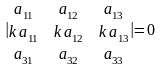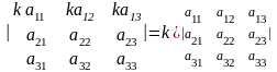 Свойство 3. Общий множитель элементов строки (или столбца) можно выносить за знак определителя.