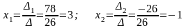 Если определитель системы (5) отличен от нуля, то система имеет единственное решение, которое находится по формулам: