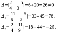 В случае, когда система имеет единственное решение, это решение можно найти с помощью определителей второго порядка.