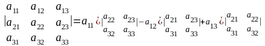 Используя эту теорему, запишем разложение определителя третьего порядка по первой строке.