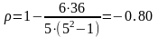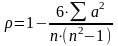Ранговый коэффициент корреляции более пригоден по сравнению с обычным коэффициентом для характеристики корреляций в случаях нелинейной связи и для данных, распределение которых отличается от нормального. Кроме того, данные для расчета рангового коэффициента могут быть представлены в полуколичественных измерениях. Достаточно ориентировочных данных об уровне признака. Вычисление коэффициента проводится по формуле: