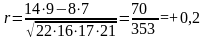 подставляют полученные данные в известную формулу и вычисляют коэффициент корреляции.