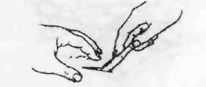Рис.22. Позиция скальпеля в руке и фиксация кожи при проведении разреза