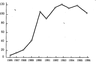 Максимальный отток рабочей силы за границу пришелся на 1990 г. — 103,5 тыс. человек (до середины 80-х гг. ежегодно выезжало лишь 3 тыс. человек). В середине-конце 90-х гг. ежегодно выезжало лишь 3 тыс. человек). В середине-конце 90-х гг. эмиграционный поток колеблется на уровне 100—115 тыс. отъезжающих в год. Поток эмигрантов не возрастает в результате существующих систем квотирования приема эмигрантов за рубежом. Поэтому численность этого потока не сможет превышать 0,1% населения России в год.