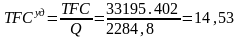 Удельные постоянные расходы на производство кирпича (ТFСуд) рассчитывается следующим образом: