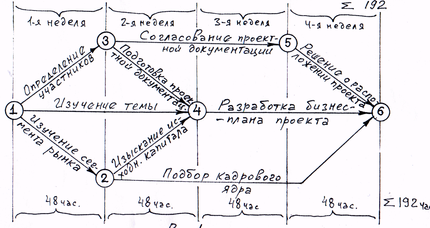 Первым шагом является составление ведомости перечня мероприятий, каждое из которых нормируется по трудоемкости и длительности. Затем строится графическая сеть (цель), отражающая последовательность, взаимосвязь и длительность событий.