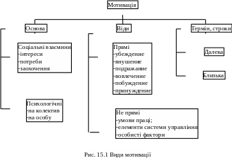 Соціально-психологічні методи – сукупність конкретних прийомів впливу на процеси формування і розвитку трудових колективів, соціальні процеси, що відбуваються усередині них; структуру зв'язків потреб, інтересів, стимулів, соціальних задач. Ці методи відрізняються мотиваційною основою. Соціальна мотивація передбачає орієнтування на політичні, національні, моральні, сімейні й інші соціальні інтереси. Методи впливу включають як заохочення, так і різні форми санкцій. При цьому враховують особливості соціального механізму, що діє в колективі, до складу якого завжди входять не тільки формальні але і неформальні групи, а також роль і статус кожної особистості; систему взаємин у колективі, соціальні потреби й інші соціальні аспекти. І хоча застосування соціальної мотивації зв'язано з особливою складністю, тонкістю і нерідко невизначеністю кінцевого ефекту, роль її постійно зростає (рис. 15.1).