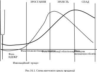 Сучасна концепція теорії інновації включає таке поняття як "життєвий цикл продукції" (рис.16.1).