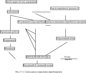 Виробництво є динамічною системою, що розвивається і створеної на основі раціонального сполучення в часі і просторі засобів праці, предметів праці і самої праці. Зазначені елементи взаємозв’язані і взаємозалежні вимагають чіткої і цілеспрямованої взаємодії з внутрішнім і зовнішнім середовищем кожного підрозділу. В основному виробництві здійснюється перетворення предметів праці в готову продукцію (рис. 17.3).