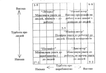 Рис. 1. Управлінська сітка Р.Блейка - Дж.Мутона: