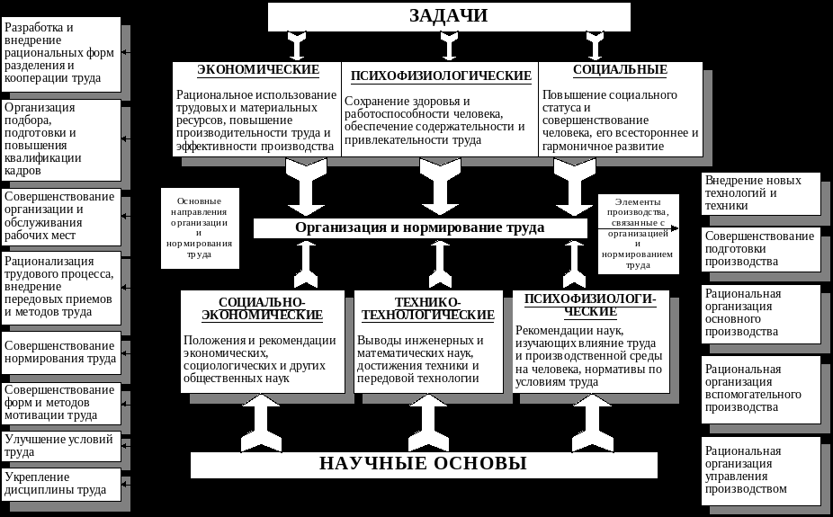 Рис. 1. Задачи, научные основы, направления организации и нормирования труда