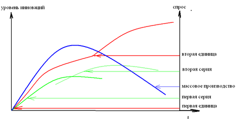 Рис. 2.1. жизненный цикл операционной системы по типу производства и зависимости от уровня инноваций и спроса