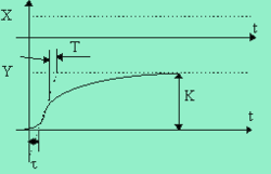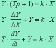 В разностном виде уравнение можно записать как (Yi+1 - Yi)*T+Yi*dt = k*Xi*dt. Или выразив настоящее через прошедшее Yi+1 = А* Xi +В* Yi. Здесь А и В весовые коэффициенты. А указывает на вес компоненты Х, определяющей влияние внешнего мира на систему, В указывает на вес Y, определяющей память системы, влияние на ее поведение истории.