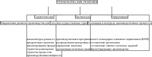 В зависимости от содержания управленческие решения в производственном менеджменте дифференцируются на стратегические, тактические и оперативные.