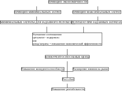 Все решения производственного менеджмента основаны на принципе экономичности (экономической эффективности). Он заключается в том, чтобы при наличии различных вариантов решений и способов их реализации достигать наилучшего соотношения между используемыми ресурсами и достигаемыми результатами, т.е. между целью и средствами ее достижения.