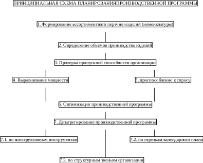 Общим правилом является распределение производственной программы по иерархическим уровням производственной структуры (производствам, цеха и участкам) начиная с заключительных стадий и заканчивая начальными. Например, в машиностроении – от общей сборки к заготовительным операциям.