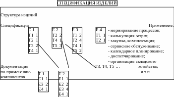 Общепринятой формой декомпозиции любых объектов производства, принятой в практике производственного менеджмента, являются спецификации материалов, деталей, узлов и изделий.