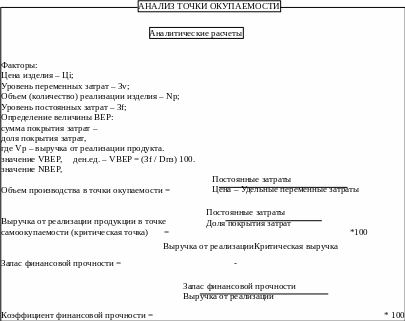 Цель анализа точки самоокупаемости (или критической точки) – определение целесообразных объемов выпуска и допустимого уровня цен реализации продукции конкурентного вида, при которых ее производство становиться прибыльным.