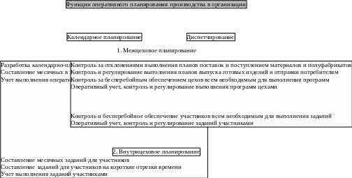 Оперативного планирования производства - это разработка производственных заданий по изготовлению продукции на относительно короткие промежутки времени, непрерывный контроль и регулирования для осуществления принятой производственной программы и достижения целей деятельности организации.